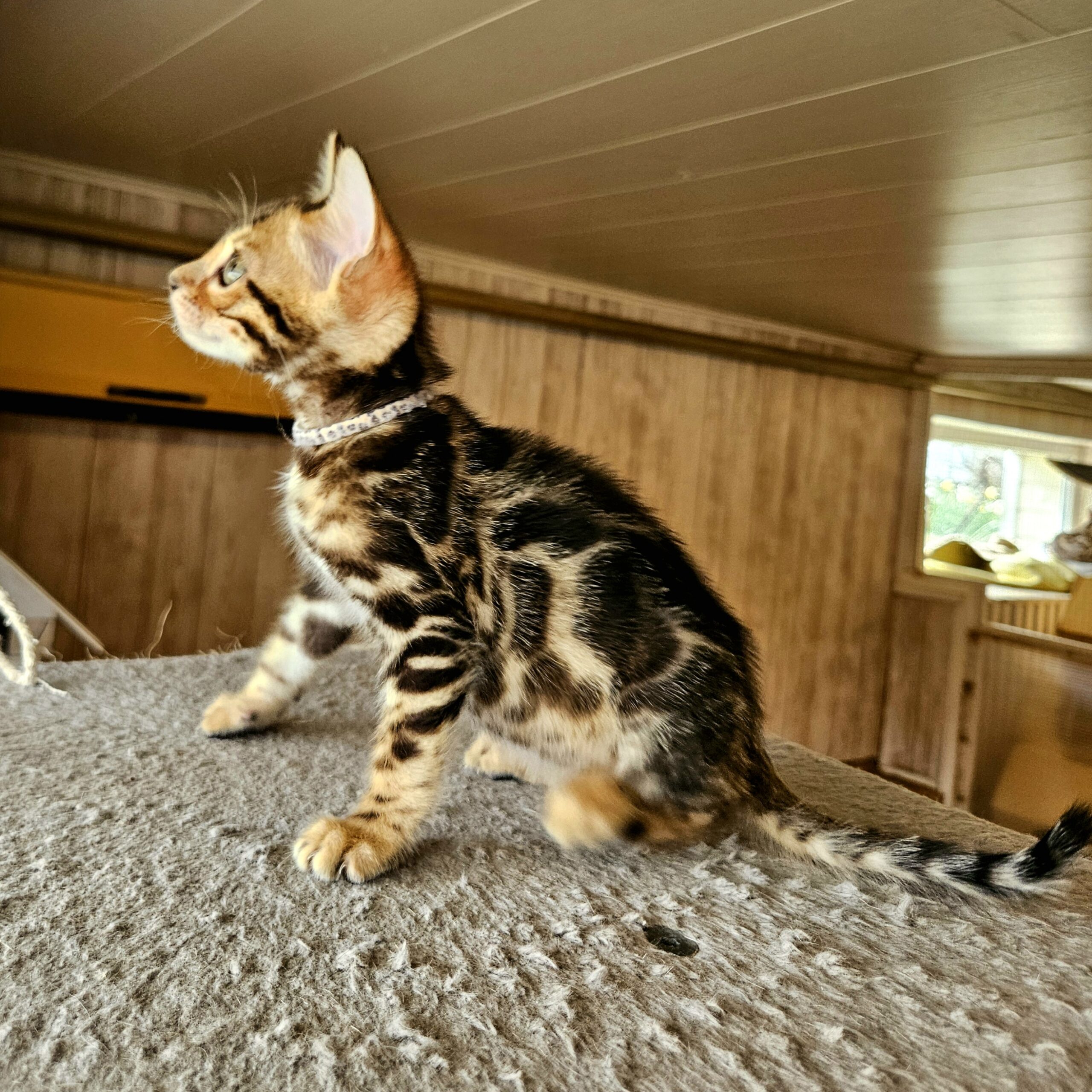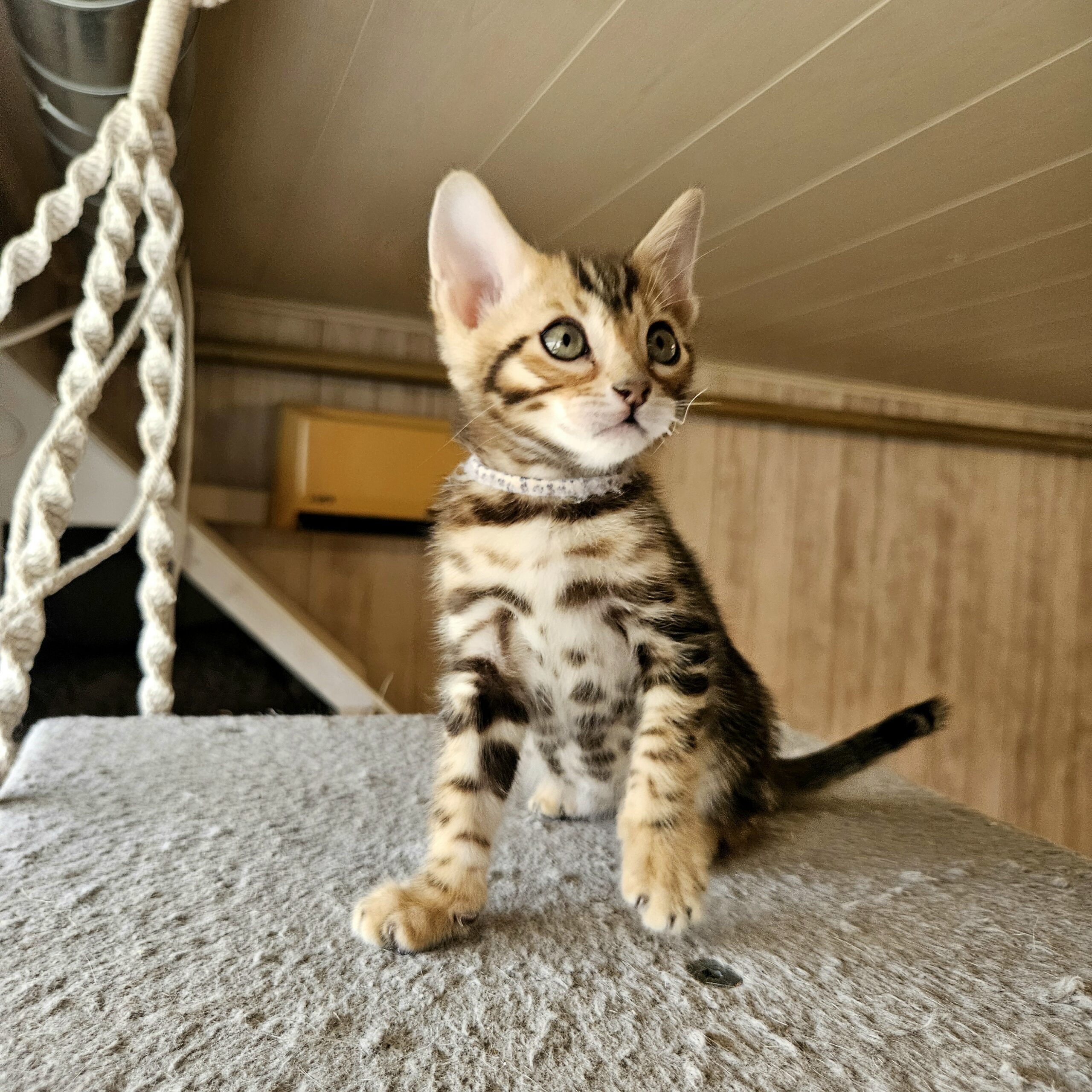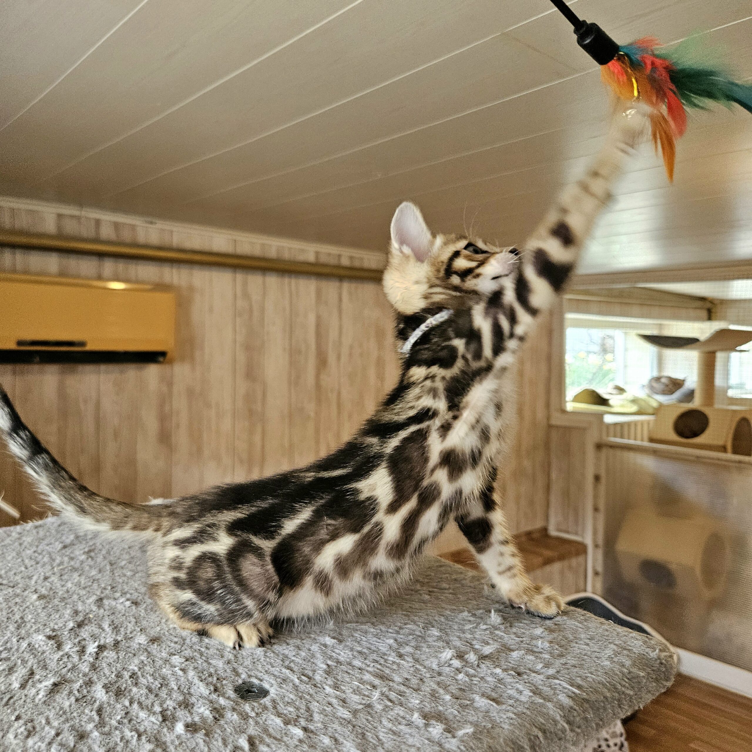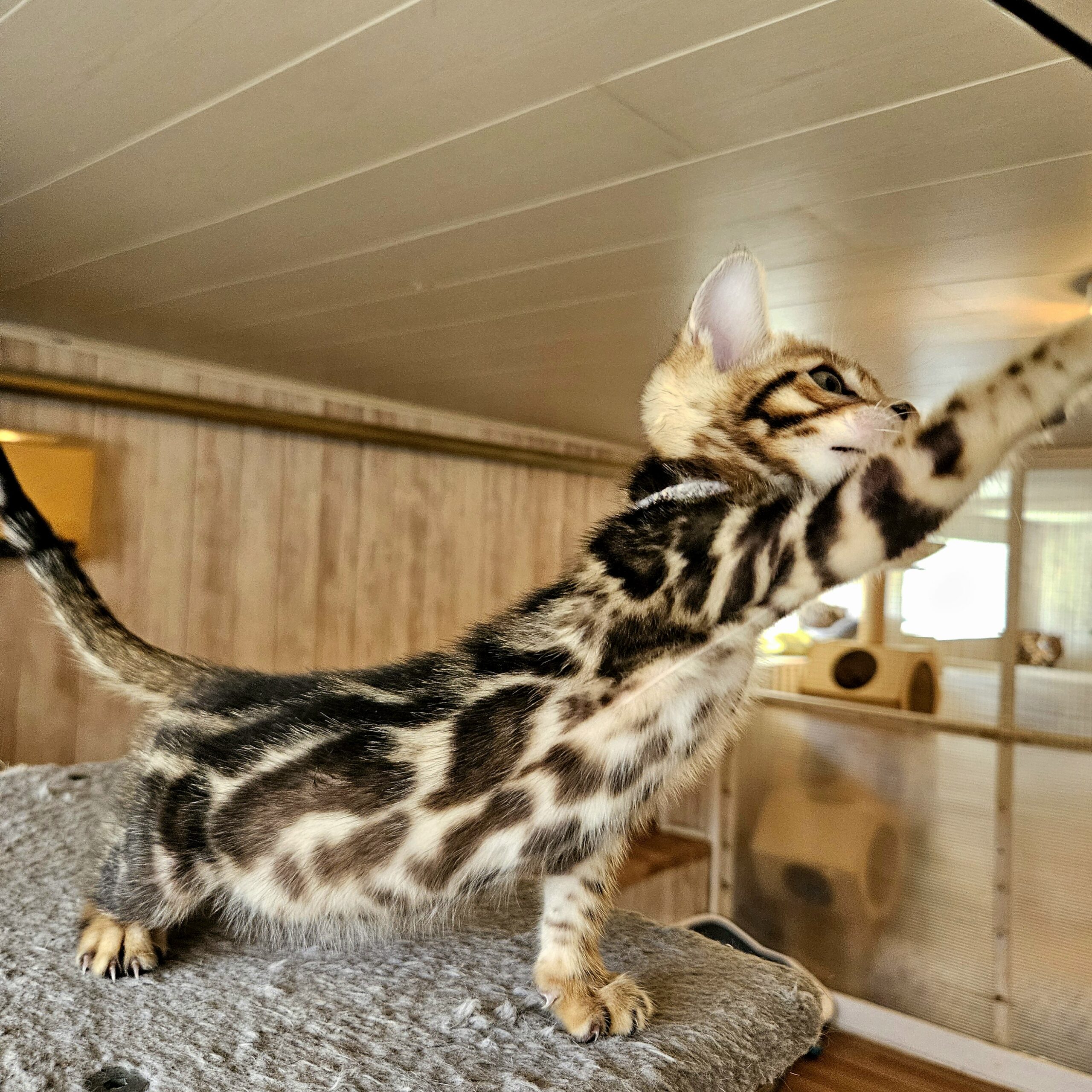 MaisonLeopard Lana has a beautiful pattern with excellent contrast. She has a very light background with dark rosettes. She is a very affectionate kitten, highly social, and brave.