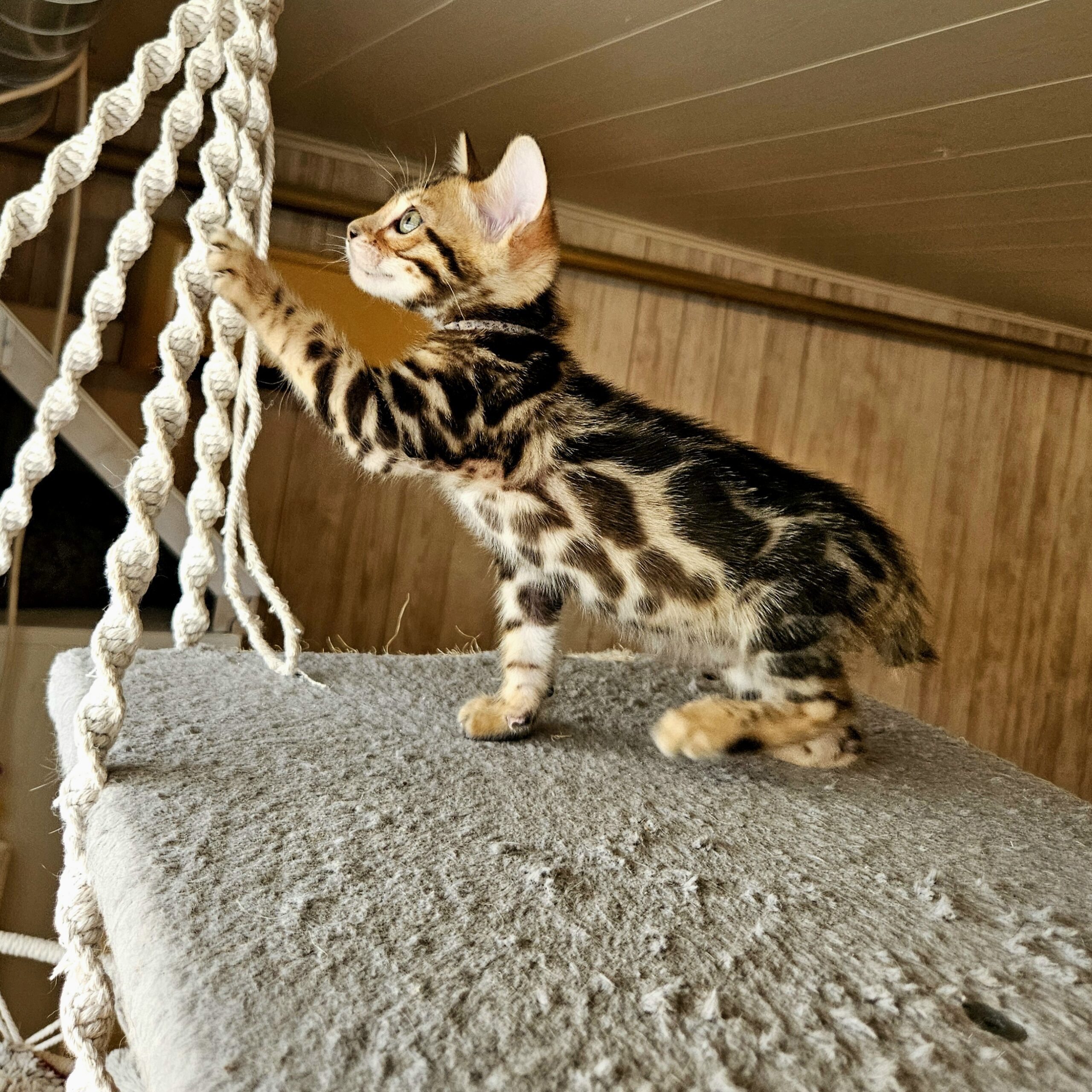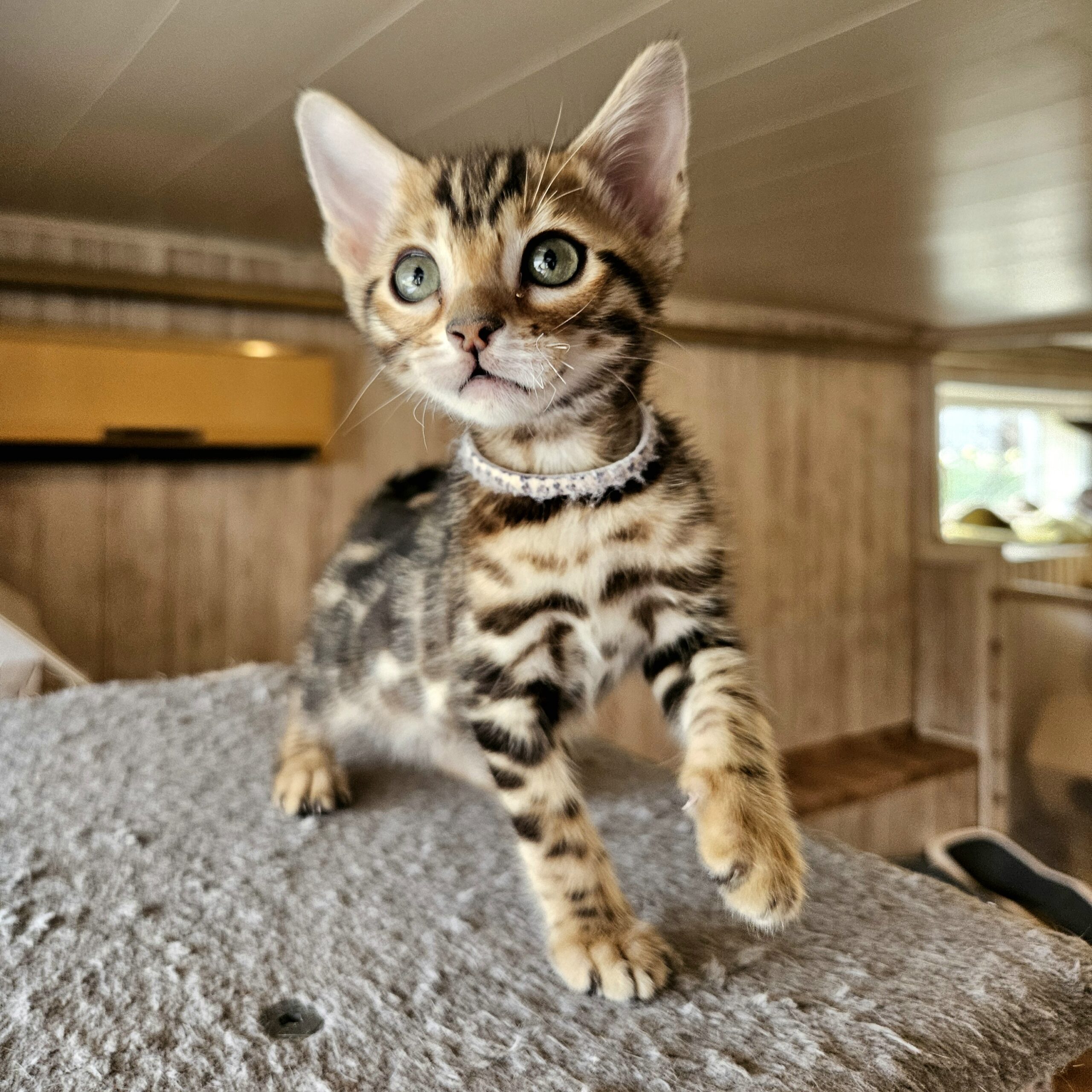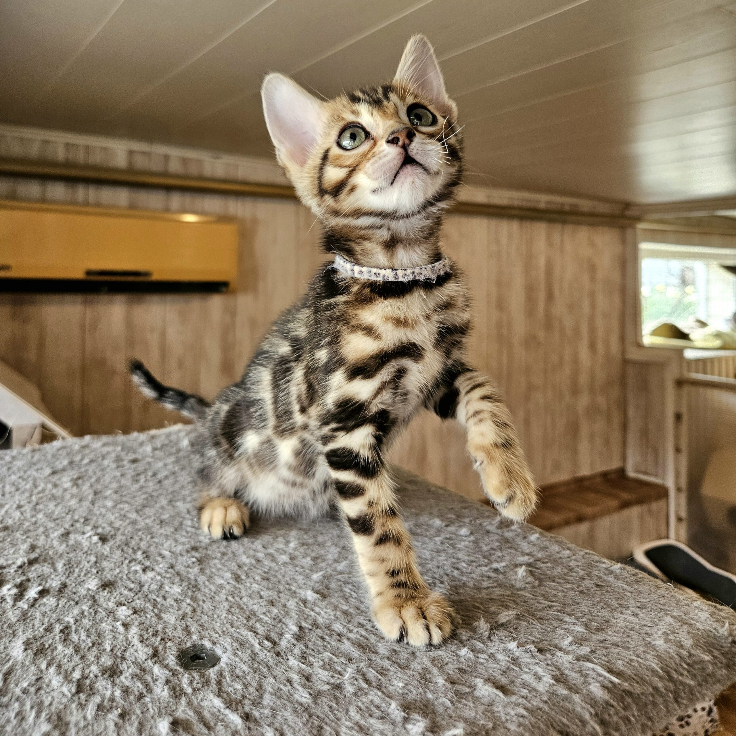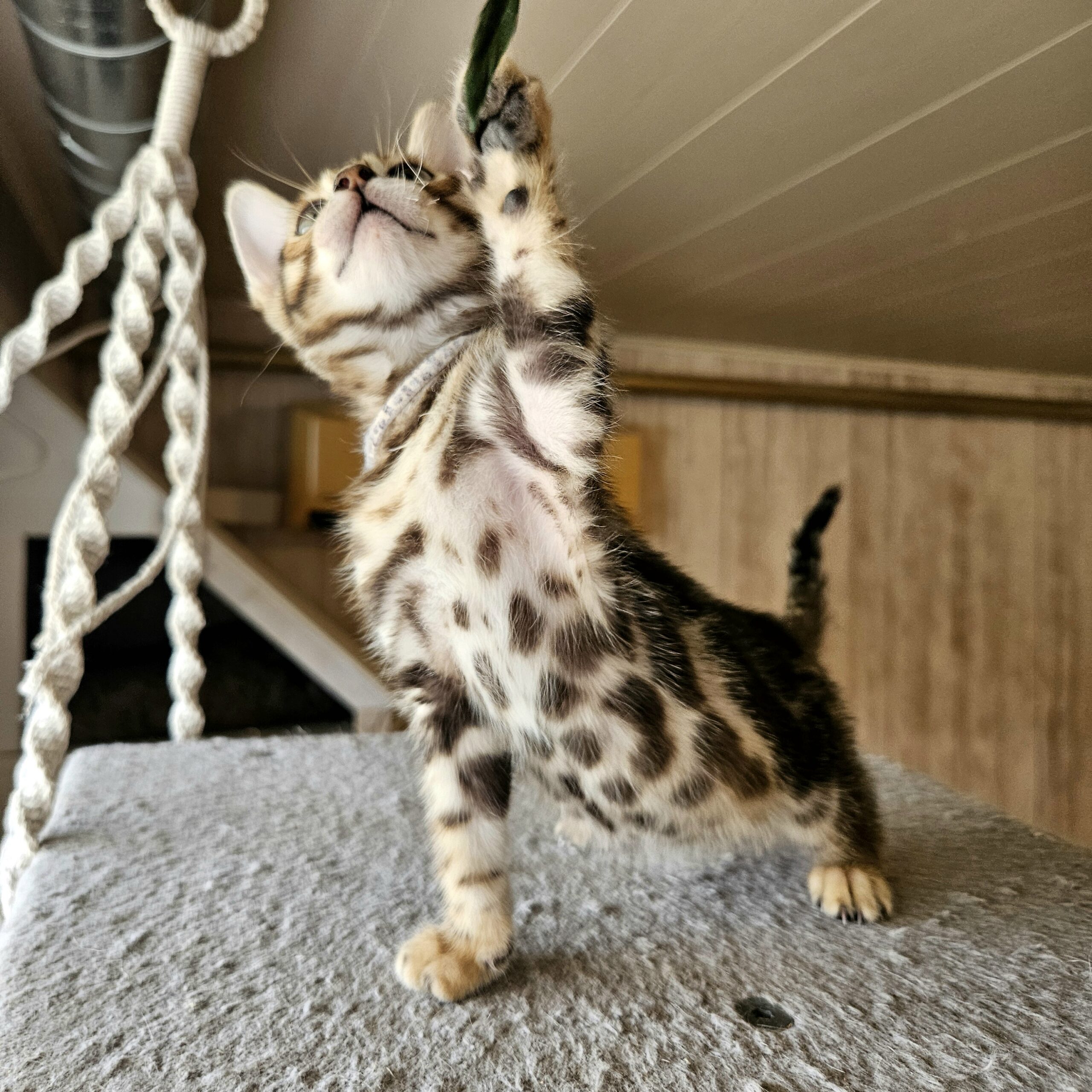 MaisonLeopard Lana has a beautiful pattern with excellent contrast. She has a very light background with dark rosettes. She is a very affectionate kitten, highly social, and brave.