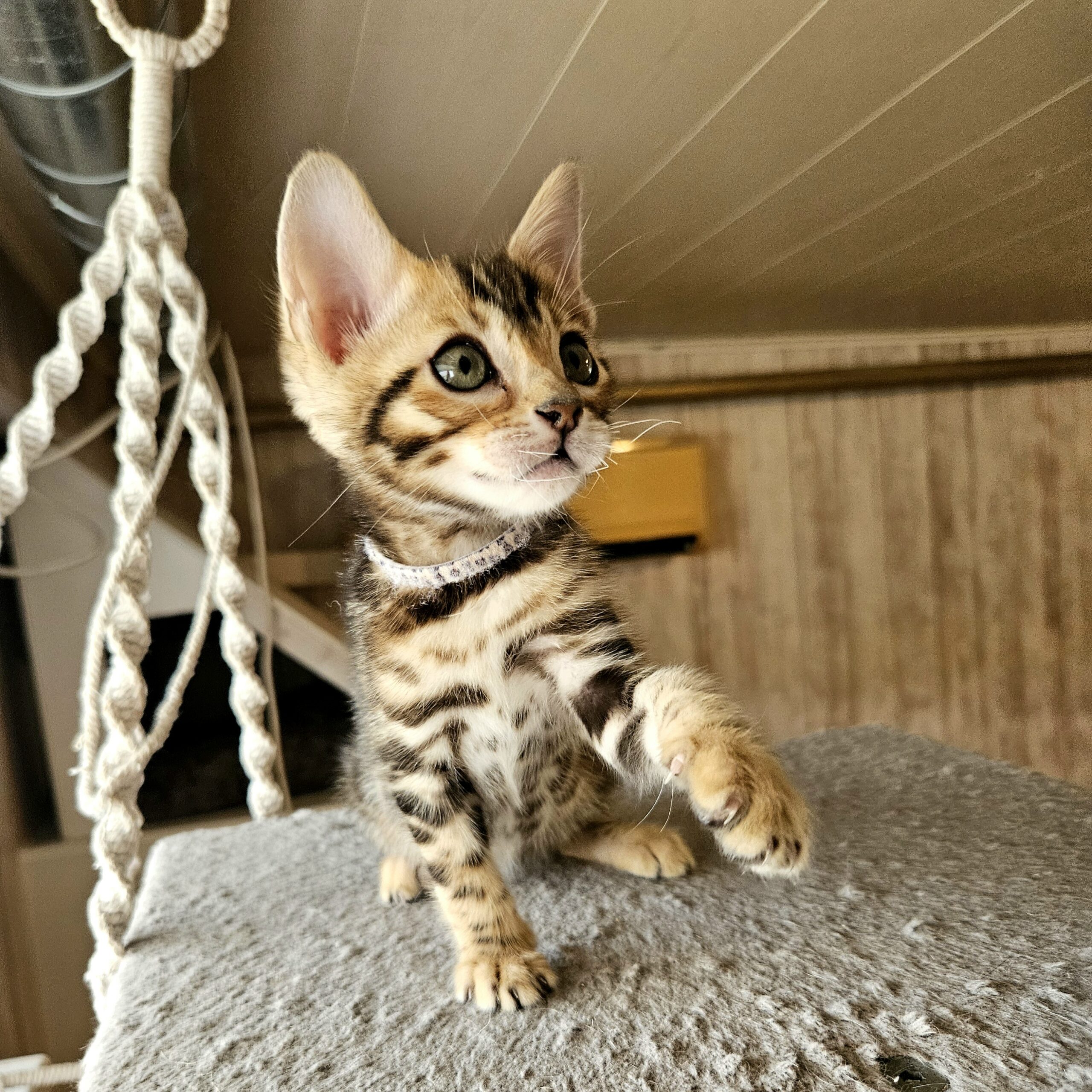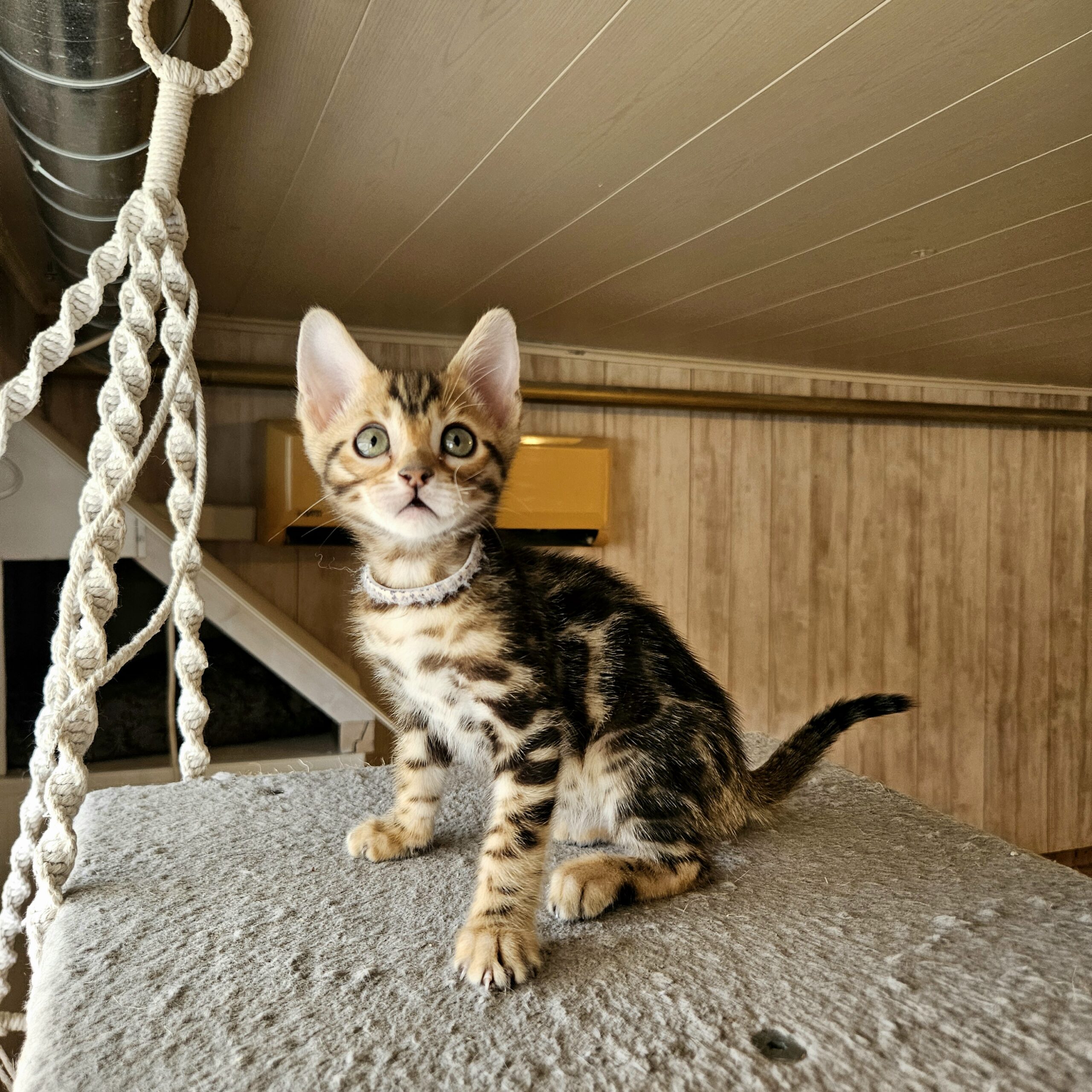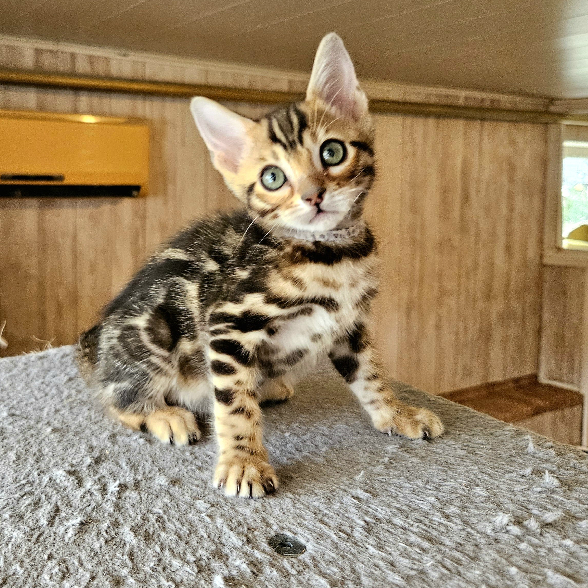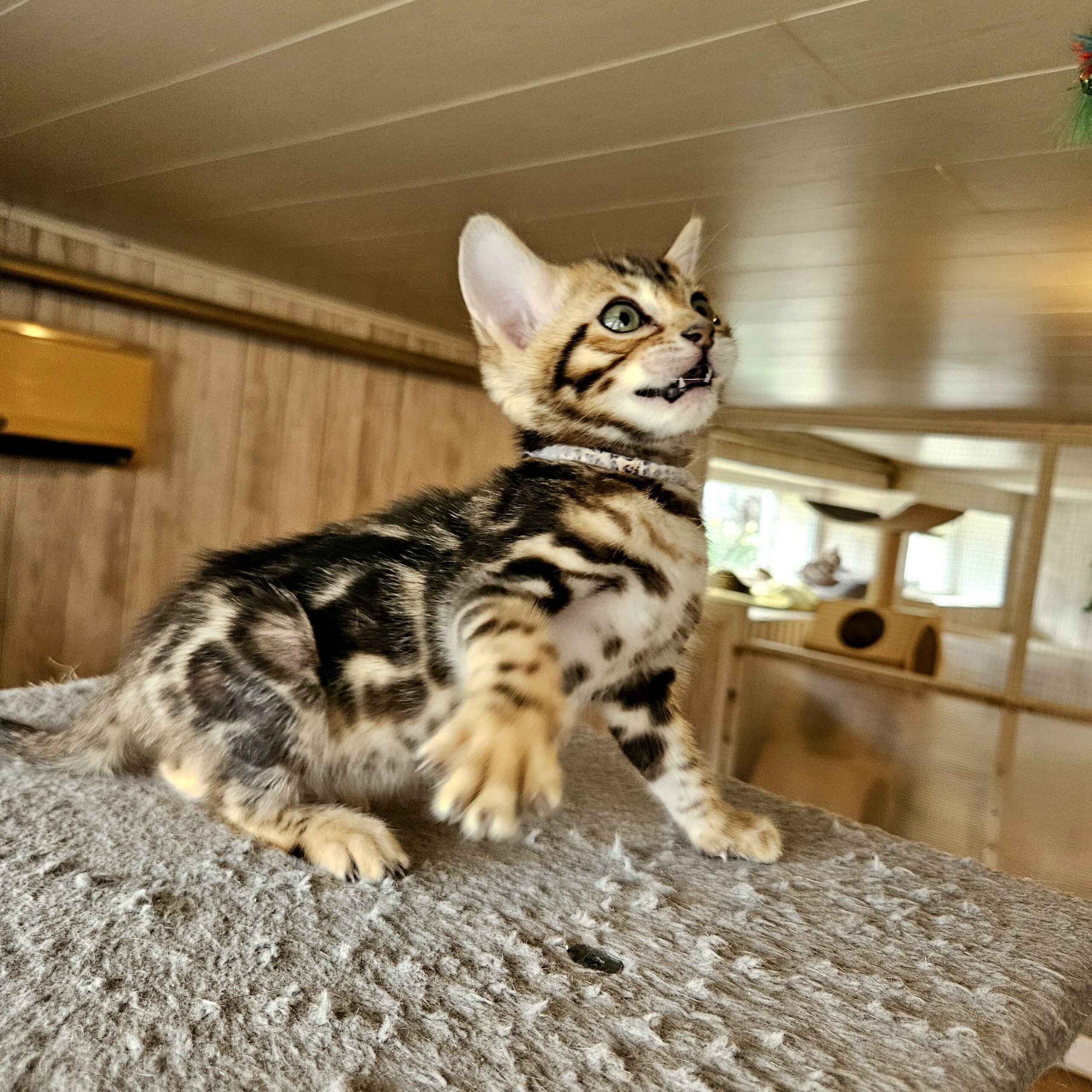 MaisonLeopard Lana has a beautiful pattern with excellent contrast. She has a very light background with dark rosettes. She is a very affectionate kitten, highly social, and brave.