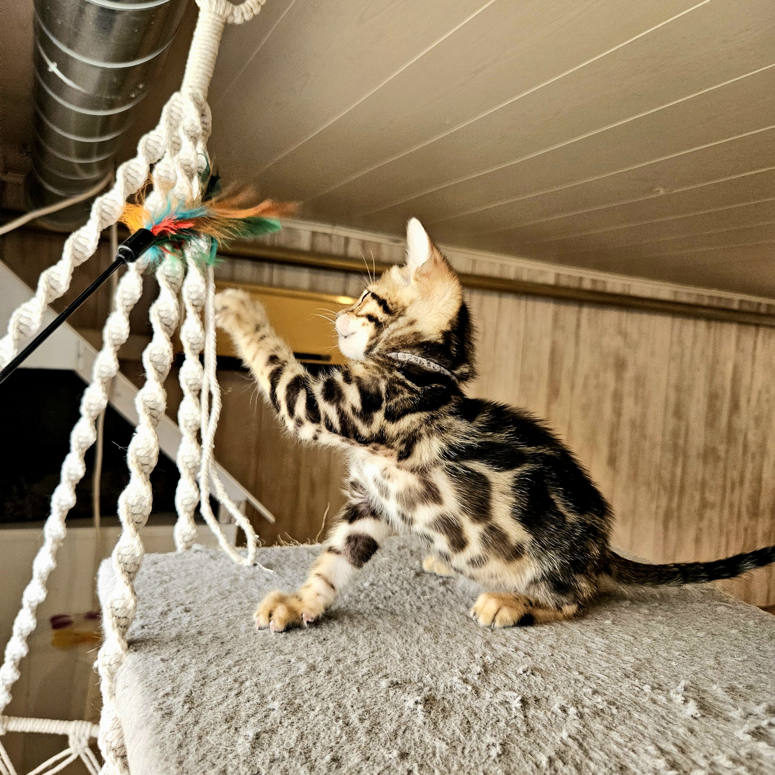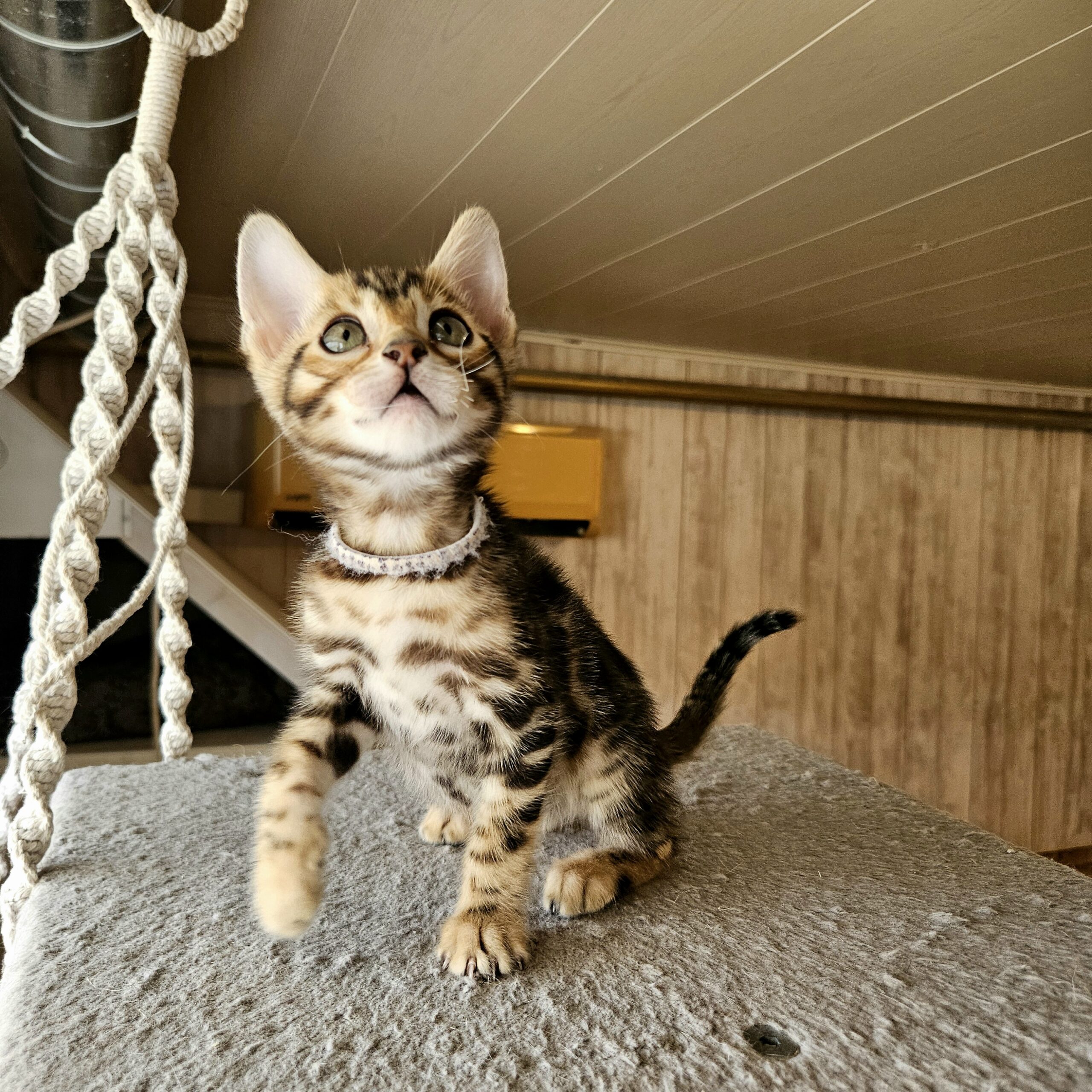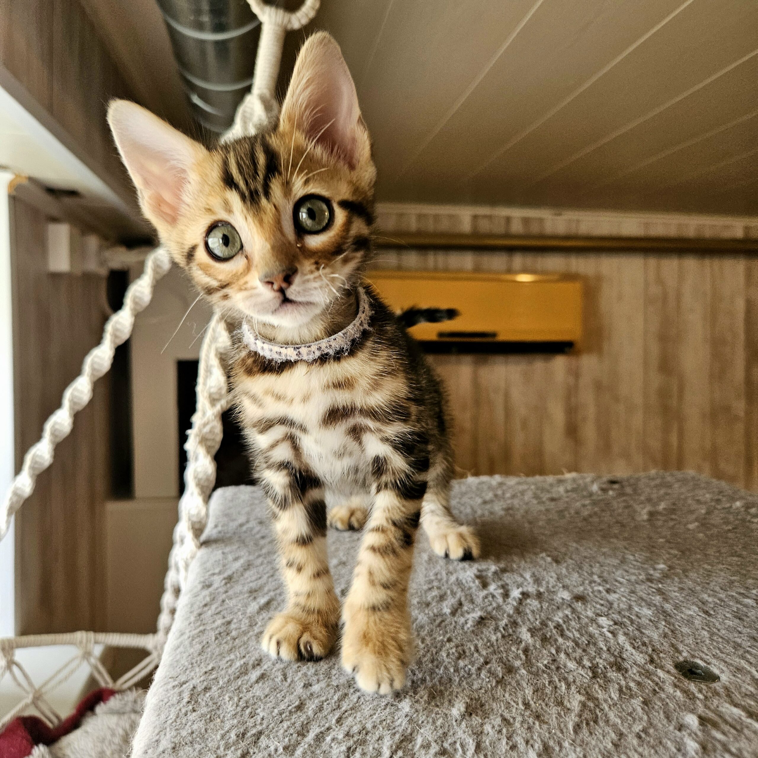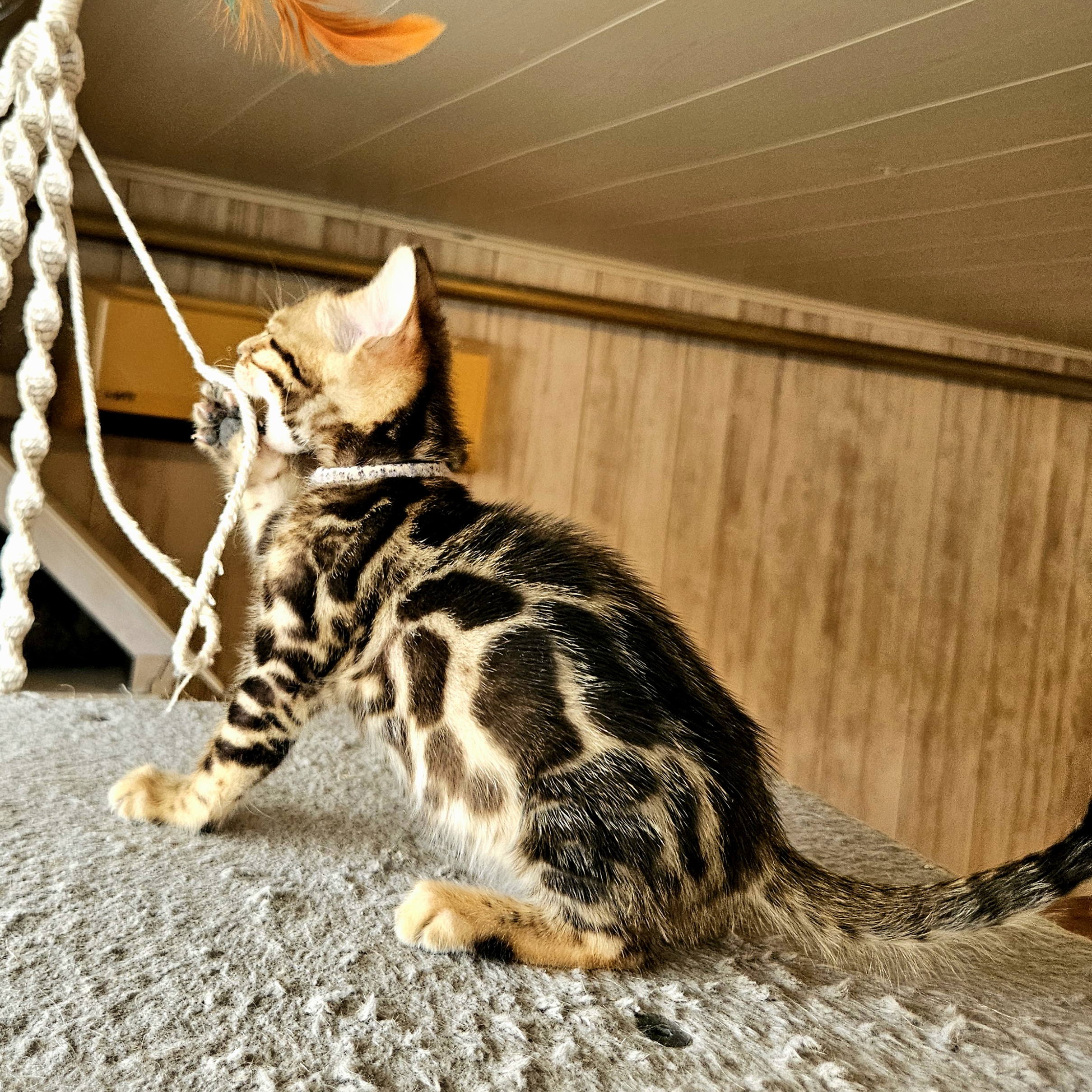MaisonLeopard Lana has a beautiful pattern with excellent contrast. She has a very light background with dark rosettes. She is a very affectionate kitten, highly social, and brave.