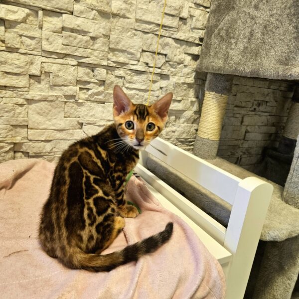 Read moreIndico is beatuifil golden brown boy with huge reosettes. He is very friendly, affectionate, and well-tempered kitten. By the time he leave for new home, kitten will be dewormed, vaccinated according to their age, microchipped, will have an EU passport, and will be registered with TICA.